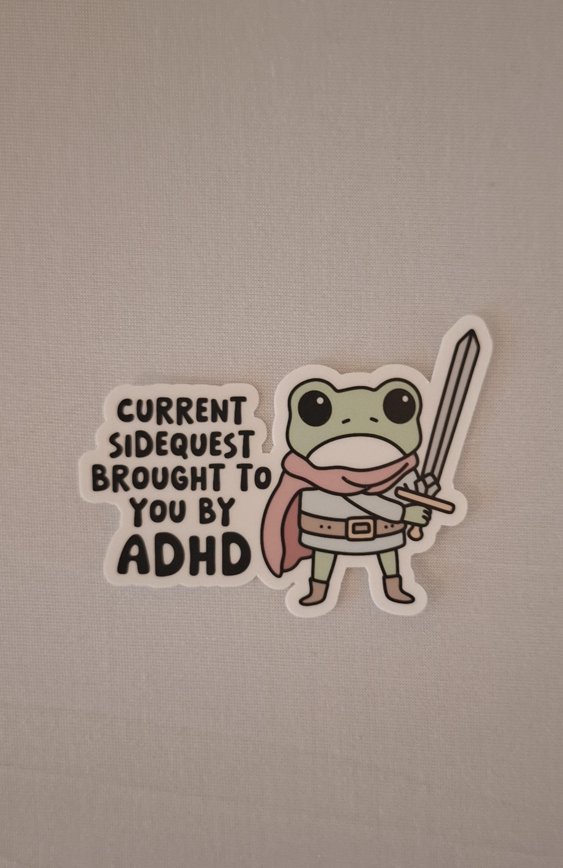 Current sidequest brought to you by ADHD sticker. Perfect for wherever you place it—on laptops, water bottles, planners, and more. Measuring approximately 2.7 inches at the widest point, it’s just the right size to brighten your day without overpowering your space.