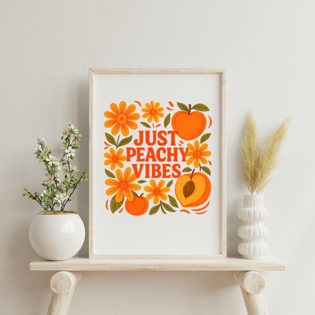 Just Peachy Vibes Wall Art Print, Two Colour Waves