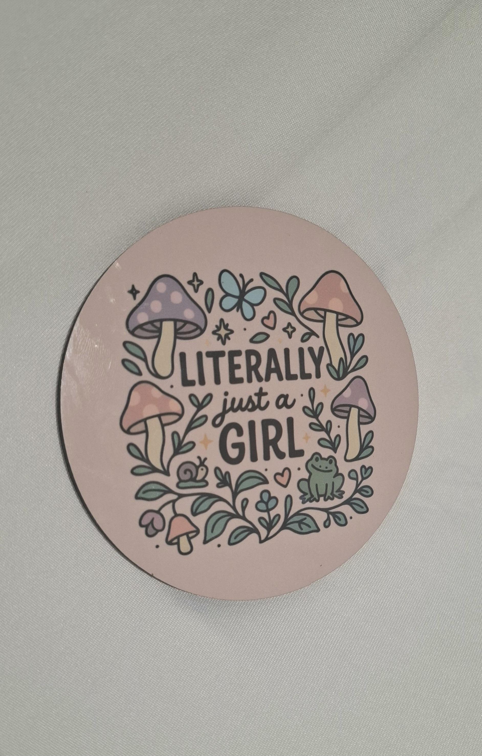 Cute coaster that says "Literally just a girl". Perfect gift or a little something for yourself!